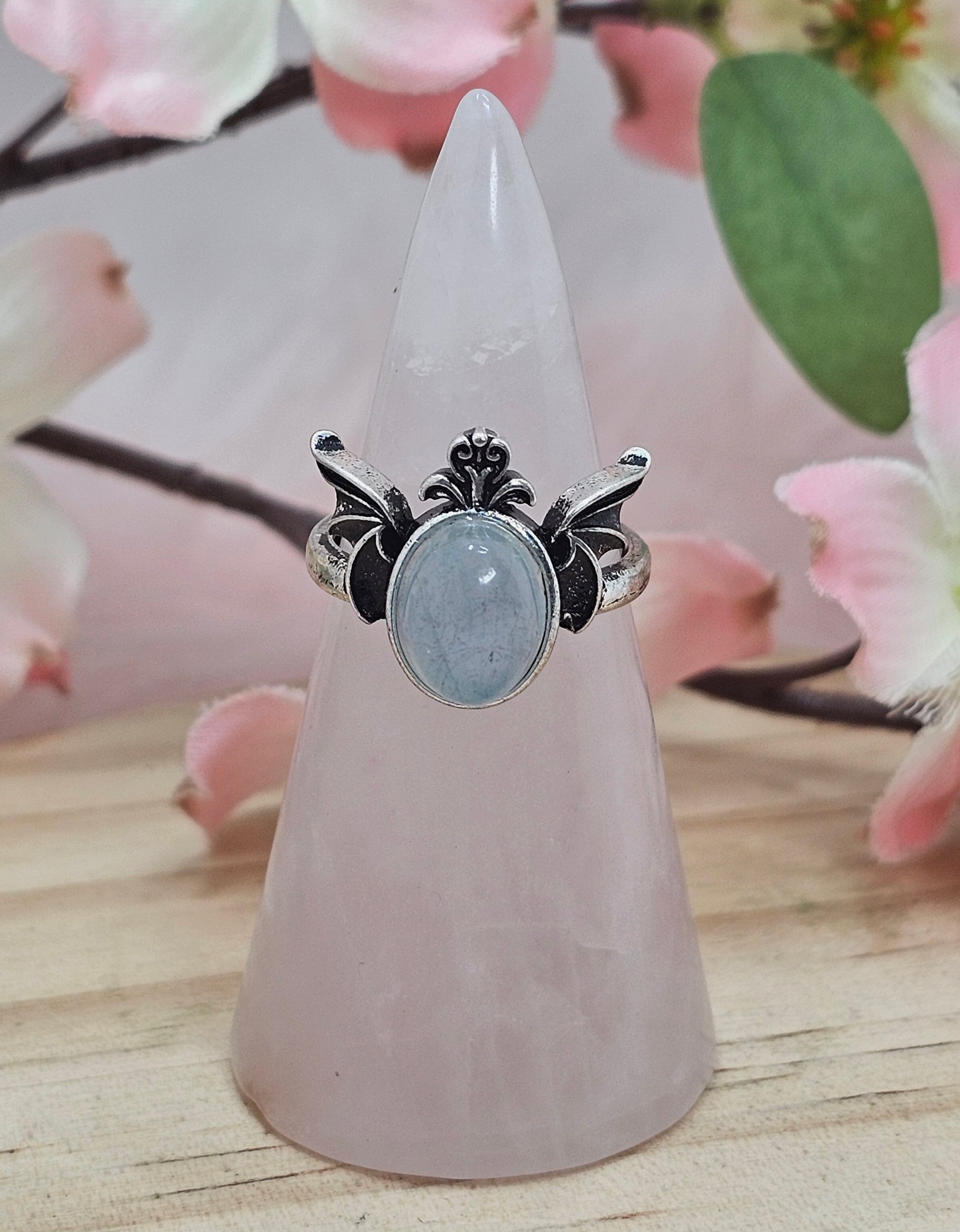 Alloy adjustable Bat shaped ring with Aquamarine stone setting
