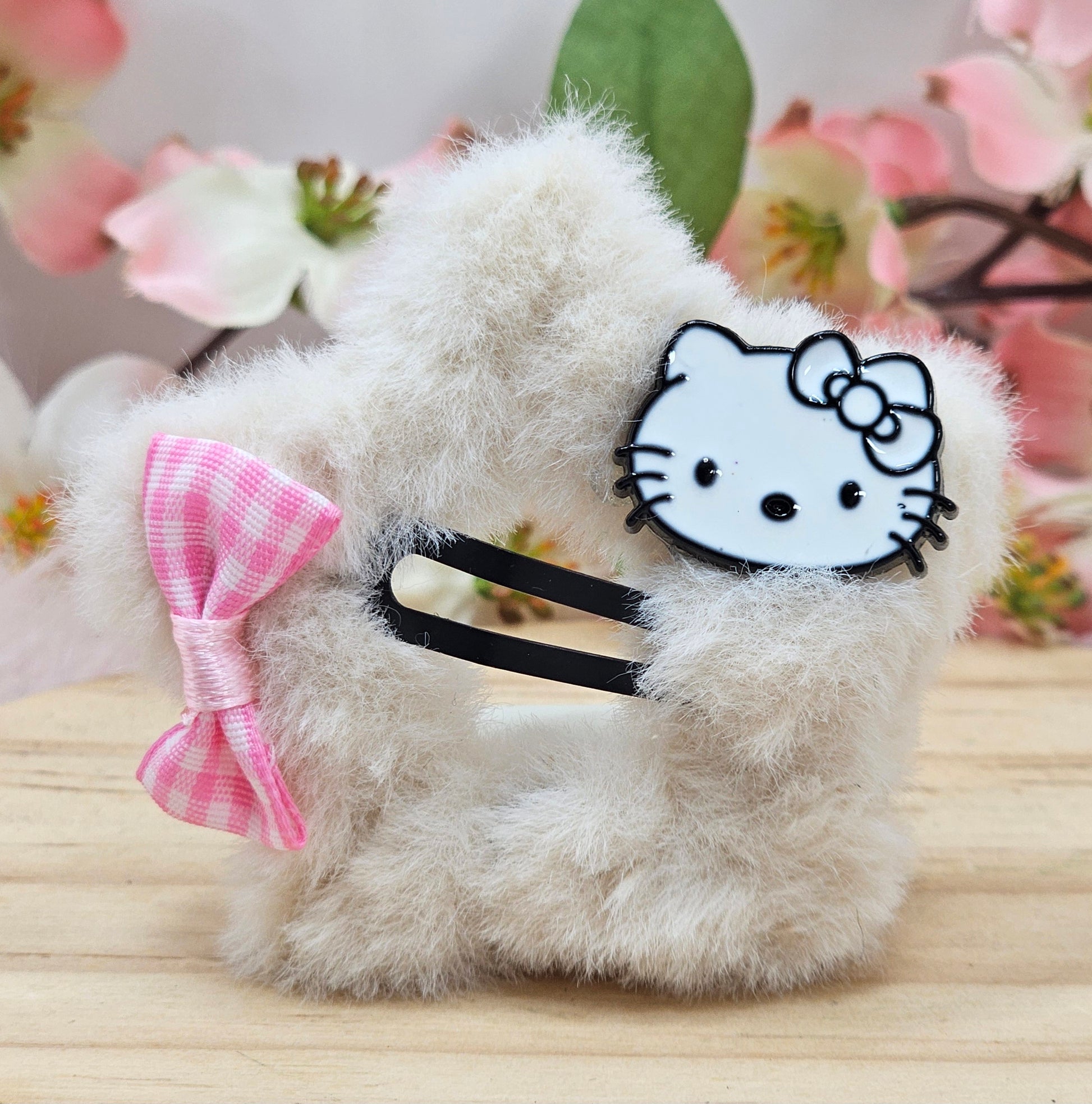 Faux fur star shaped snap hair clips with cute Hello Kitty design