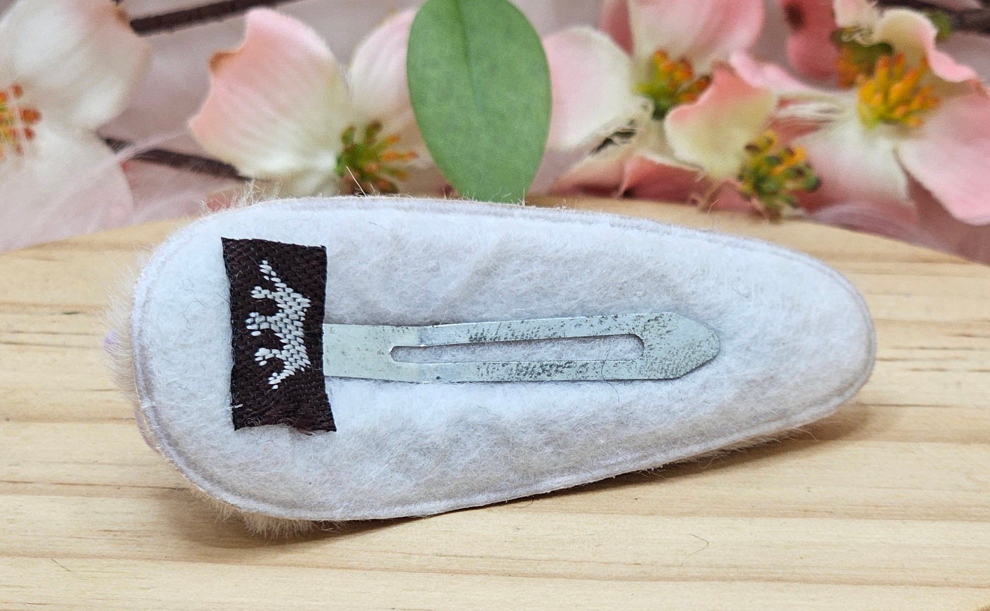 Faux fur snap hair clip with cute Hello Kuromi inspired design