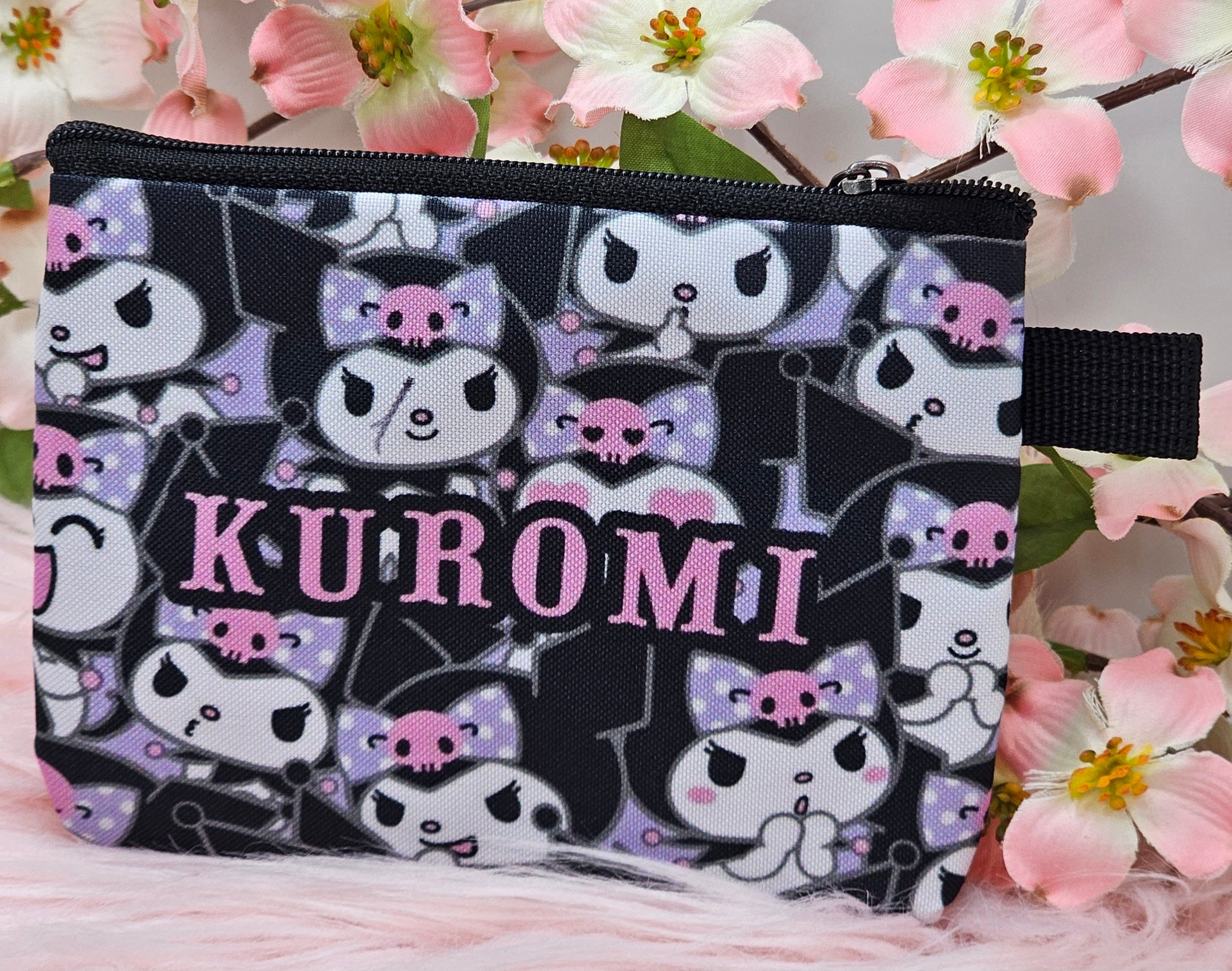 This coin purse is perfect for any fan of the Sanrio character Kuromi . It has a light weight contact design, but still has enough room to hold your cards, money and lipgloss