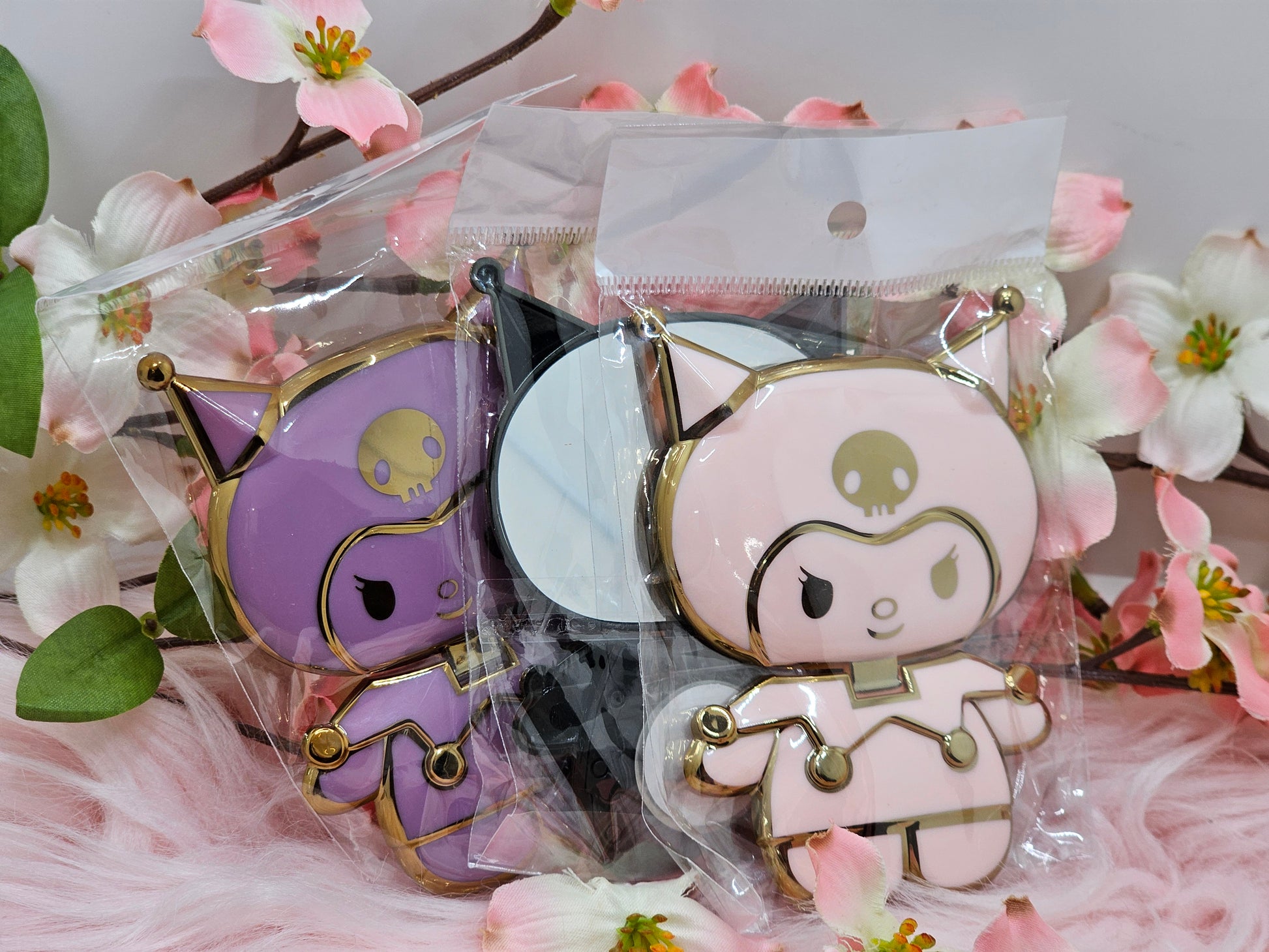 This mobile phone stand is shaped like the Sanrio character Kuromi making it cute and practical. Its has a rotatable mirror.