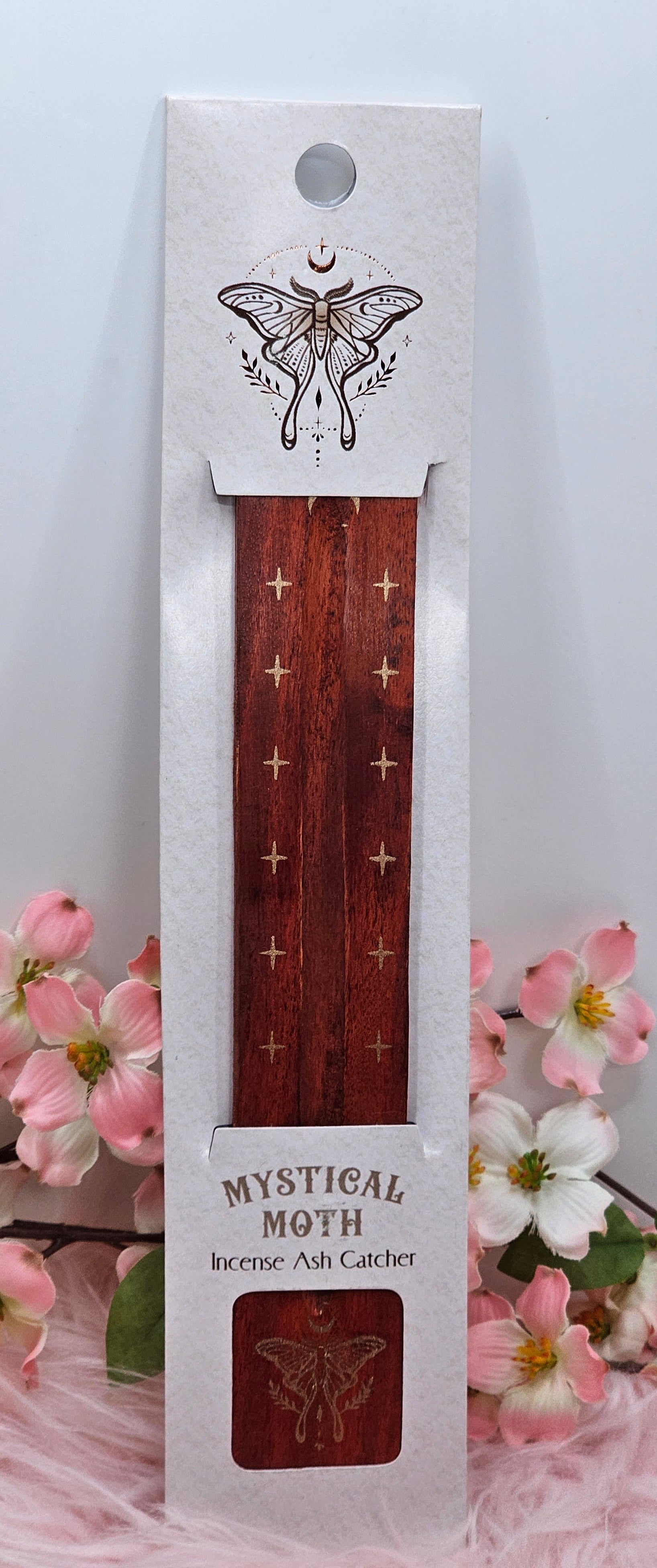 This ethereal take on a traditional wooden incense stick ash catcher features an elegant luna moth design and effectively captures ash while adding a touch of enchantment to any space. A perfect addition to meditation and relaxation rituals.