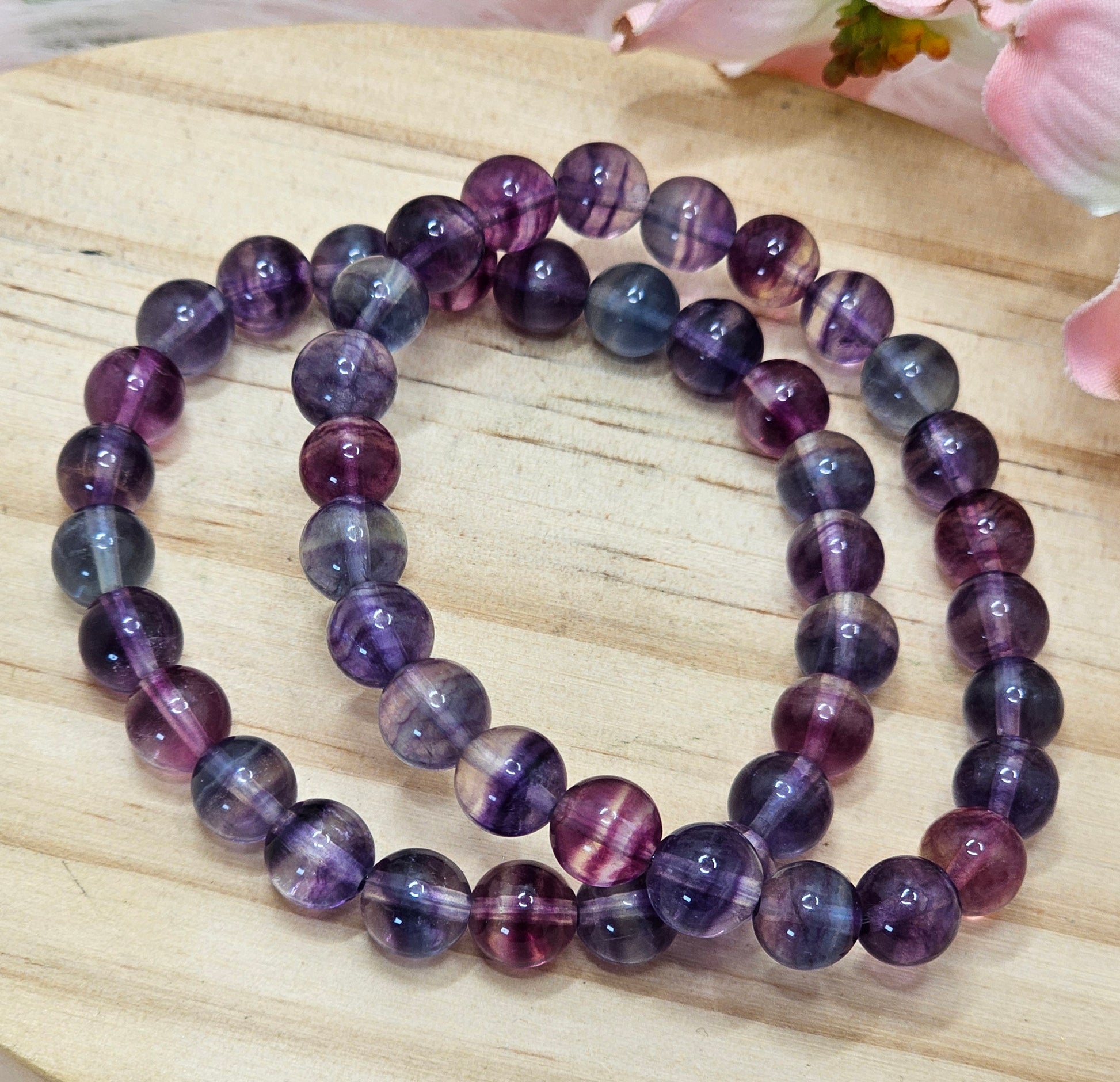 Beautiful high grade rainbow Flourite Beaded bracelet.