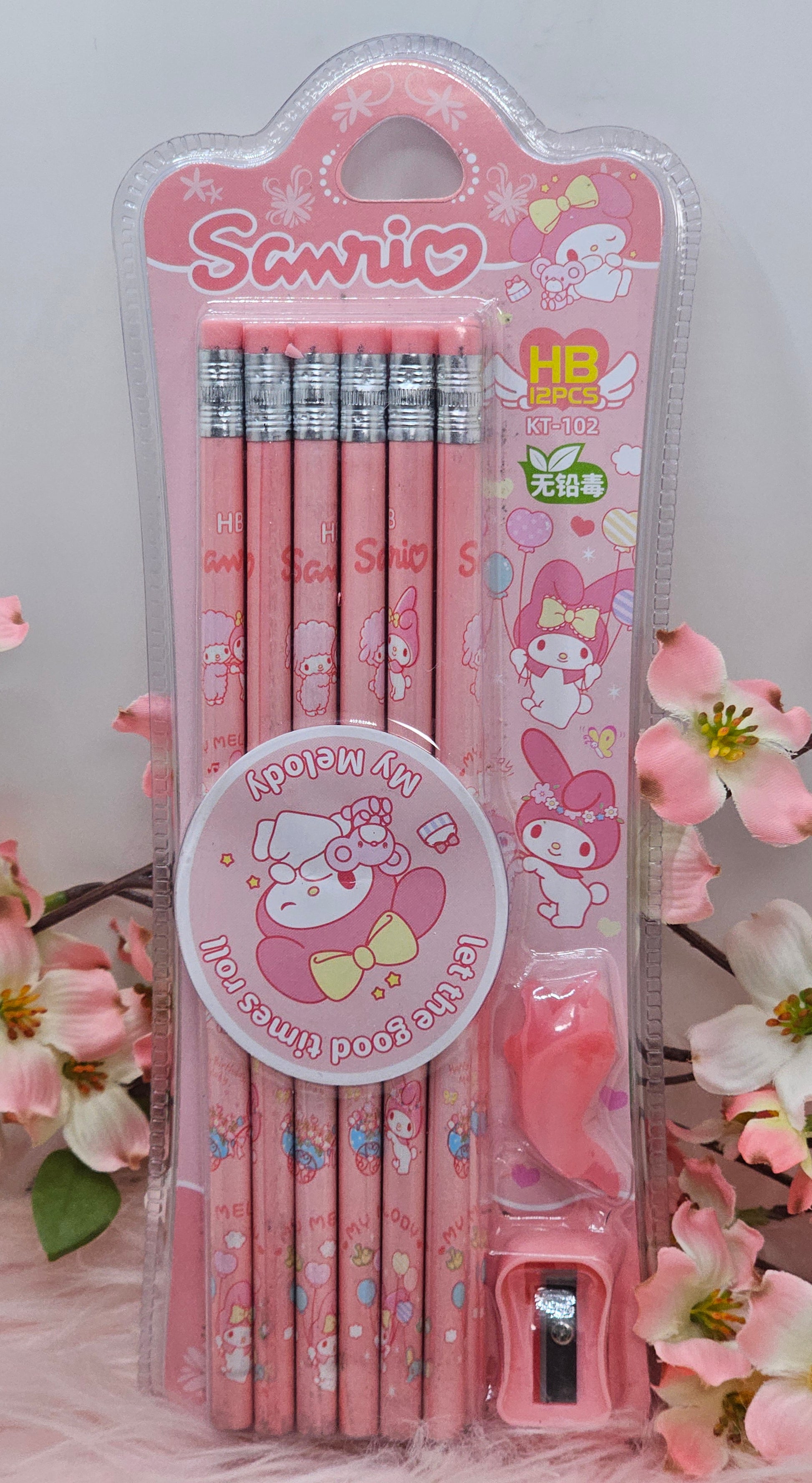 12pcs pencil set available in Cinnamoroll, Kuromi & My Melody.