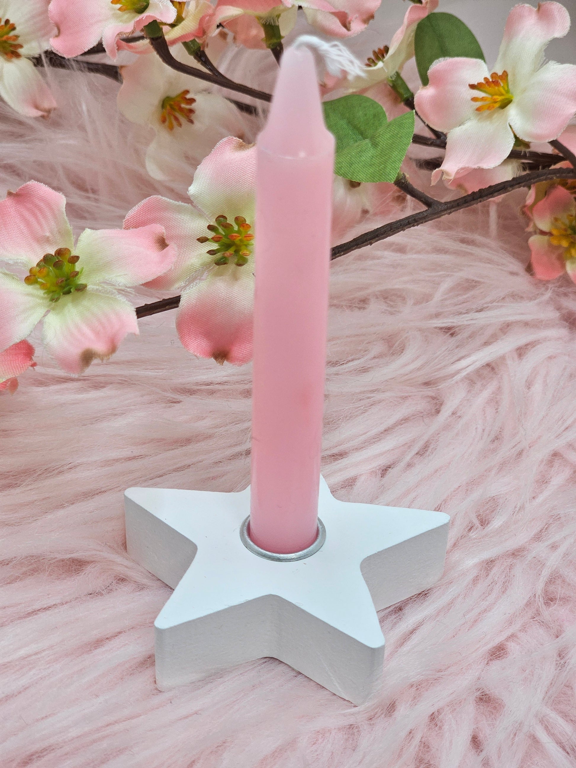 Featuring a simple white star design, this candle holder is perfectly sized for holding spell candles whilst it burns during casting.